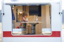 Bimobil AX 575 – Die Drehschemel-Vorrichtung bedingt den etwas erhöhten Einbau der Frontsitzgruppe, diese bietet mit gutem Rundblick auf den gegenüberliegenden Sitzbänken mit 155 Zentimetern Breite Platz für sechs Personen. Foto: Auto-Medienportal.Net/Bimobil