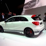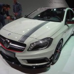 Mit dem stärksten Vierzylinder-Benziner in einem Personenwagen tritt der Mercedes-Benz A 45 AMG in Genf zu seiner Weltpremiere an. Mit 265 kW / 360 PS Leistung bei 6000 Umdrehungen pro Minute (U/min) aus zwei Litern Hubraum und Allradantrieb setzt der neue Kompakt-AMG Zeichen. Wobei der Durchschnittsverbrauch (nach EU-Norm) zwischen 6,9 und 7,1 Litern liegen soll. In 4,6 Sekunden schafft die schnelle A-Klasse die 100 km/h Marke; die Höchstgeschwindigkeit Verbrauch wird bei 250 km/h abgeregelt.