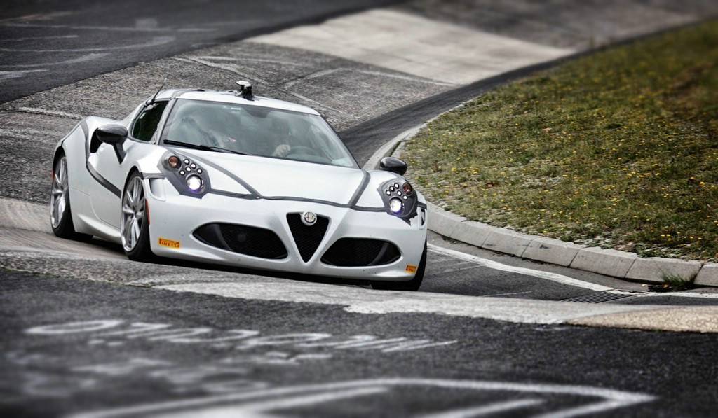 Umrundung der Nordschleife des Nürburgrings in 8.04 Minuten. Verantwortlich für die schnelle Vorstellung in der Grünen Hölle des Nürburgrings ist vor allem das Leistungsgewicht des Alfa Romeo 4C, also das Verhältnis aus Motorkraft und Gewicht. Foto: Auto-Medienportal.Net/Fiat