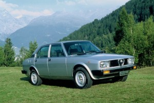 Die 1972 als gehobene Mittelklasse-Limousine vorgestellte Alfetta verdankt ihren Namen („der kleine Alfa“) dem gleichnamigen Formel-1-Renner, mit dem Luigi Fagioli und Juan-Manuel Fangio 1950 und 1951 die F-1-Weltmeisterschaft nach Mailand holten. Foto: Auto-Medienportal.Net/Alfa Romeo