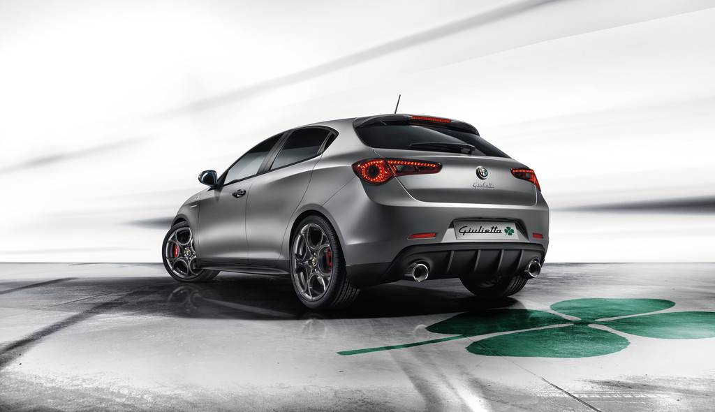 Der Alfa Romeo Giuliettra Quadrifoglio Verde besitzt ein Sportfahrwerk, ein Dark-Chrome-Paket mit dunkel glänzend lackierten Karosserieteilen sowie zwei im Durchmesser von 80 auf 92 Millimeter vergrößerte Auspuffendrohe. Rot lackierte Bremssättel und Quadrifoglio-Verde-Embleme auf den vorderen Kotflügeln setzen zusätzliche Akzente. Foto: Auto-Medienportal.Net/Alfa Romeo