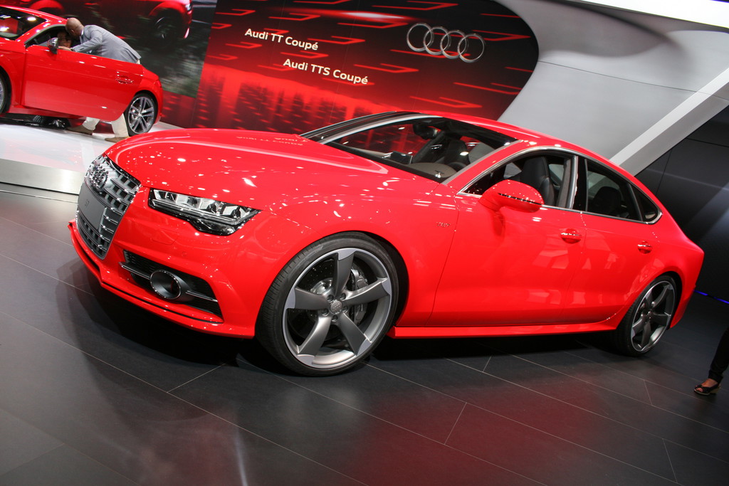 Audi S7 Sportback 2014: Am stärksten fallen die Änderungen am Kühlergrilll, den Stoßfängern, den Abgas-Endrohren sowie den Scheinwerfern auf. Foto: Auto-Medienportal.Net