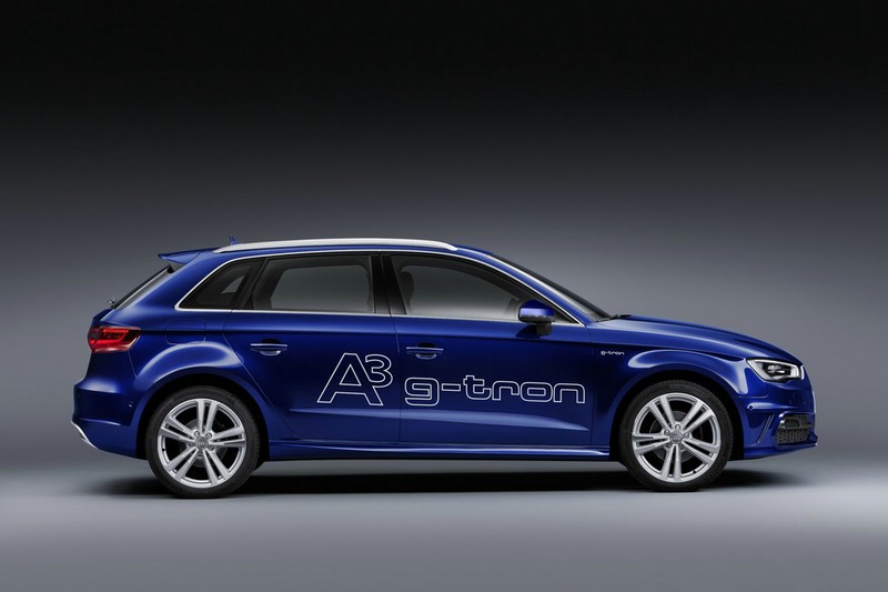 Mit 81 kW / 110 PS und 200 Newtonmeter Drehmoment erzielt der Audi A3 Sportback G-Tron über 190 km/h Spitzengeschwindigkeit, der Spurt von null auf 100 km/h dauert elf Sekunden. Auf 100 Kilometer verbraucht der Fünftürer im Mittel weniger als 3,5 Kilogramm Erdgas. Foto: Auto-Medienportal.Net/Audi