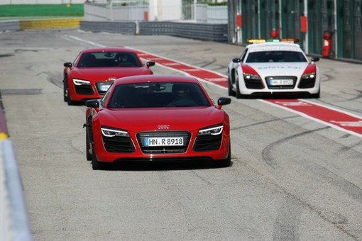 Motorisch wurde nachgelegt: Sowohl Coupé als auch Spyder lassen sich mit einem 430 PS starken V8 oder den 525-PS-V10 befeuern. Garanten für die Speerspitze der R8-Reihe ist der V10 plus in Kombination mit der S tronic. Wobei das Plus seinem Namen Ehre macht und für einen Leistungszuwachs auf 550 PS steht, die den Boliden auf bemerkenswerte 317 km/h treiben. Damit die abgerufene Leistung auch dort landet, wo sie hingehört, nämlich auf der Piste, gab Audi allen R8 seinen quattro-Antrieb mit auf den Weg. So kann der Sprit auf Tempo 100 rauchfrei und ohne Kraftverlust absolviert werden. Beim V10 plus in 3,5 Sekunden.