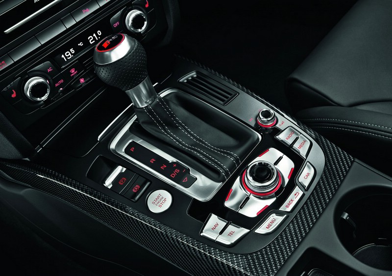 Audi RS 4 Avant – Chromspangen an Schaltern und Bedienelementen setzen Akzente. Die Dekoreinlagen bestehen serienmäßig aus Karbon, optional aus gebürstetem, mattem Aluminium, Aluminium Race, schwarzem Klavierlack oder hellem Edelstahlgewebe. Foto: Auto-Medienportal.Net/Audi