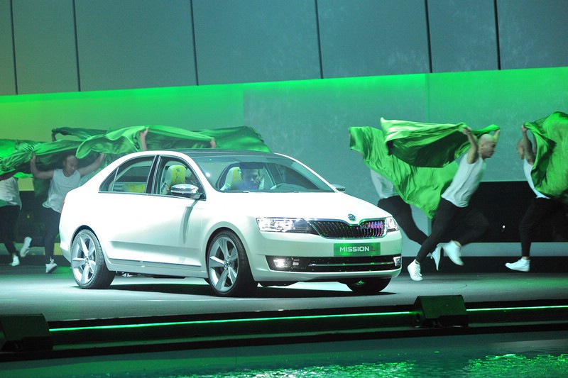 Skodas neue Kompaktlimousine. Der MissionL China gibt einen Ausblick auf den neuen Rapid. Auto China 2012. Foto: UnitedPictures