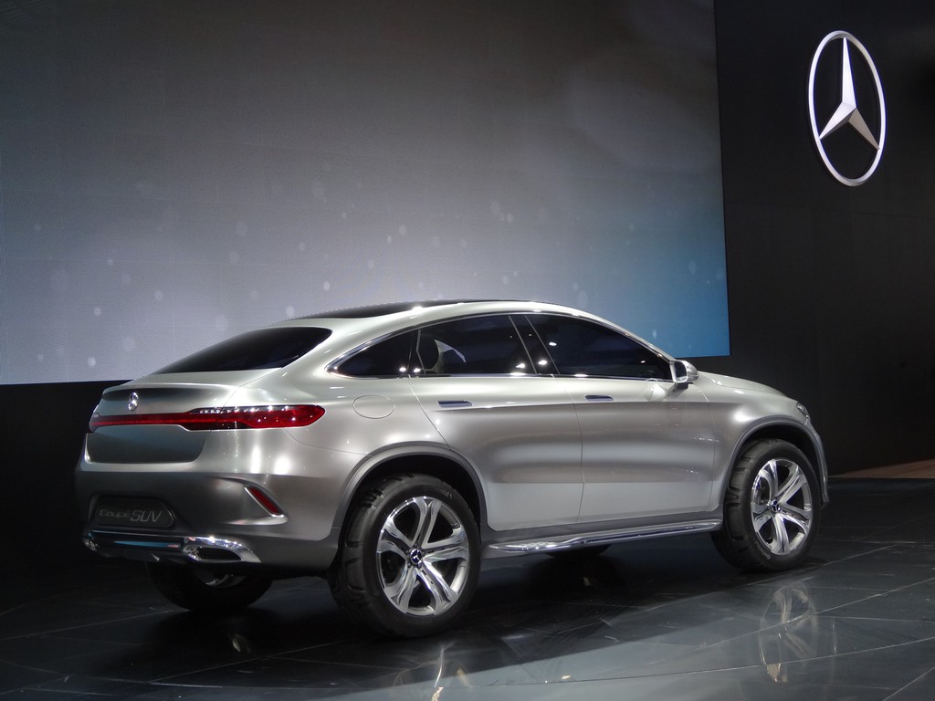 Mercedes-Benz Concept Coupé SUV – Das viertürige und allradgetriebene Coupé streckt sich auf eine Länge von knapp fünf Meter und erreicht mit seinen breiten Schultern und den ausmodellierten Radläufen eine Breite von gut zwei Meter. Dabei reicht es bis in eine Höhe von rund 1,75 Meter und zeigt dennoch die typische getreckte Dachlinie eines Coupés. Foto: Auto-Medienportal.Net