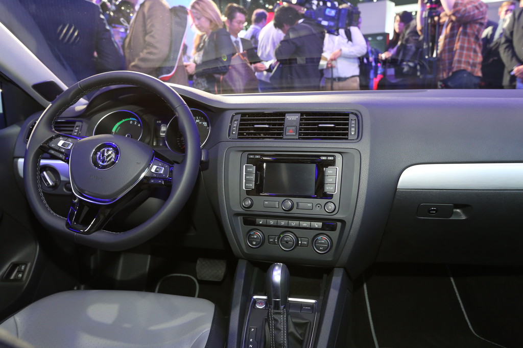Auch im Innenraum schlägt der neue VW Jetta mit seinen großzügigen Platzverhältnissen, hochwertiger Anmutung und weiter verbesserter Ergonomie eine Brücke in die nächsthöhere Klasse. Dazu trägt auch die neue Lenkradgeneration bei, deren Tastenfelder nun auch wichtige Funktionen wie die Steuerung der Geschwindigkeitsregelanlage einschließen. Foto: Auto-Medienportal.Net/Manfred Zimmermann