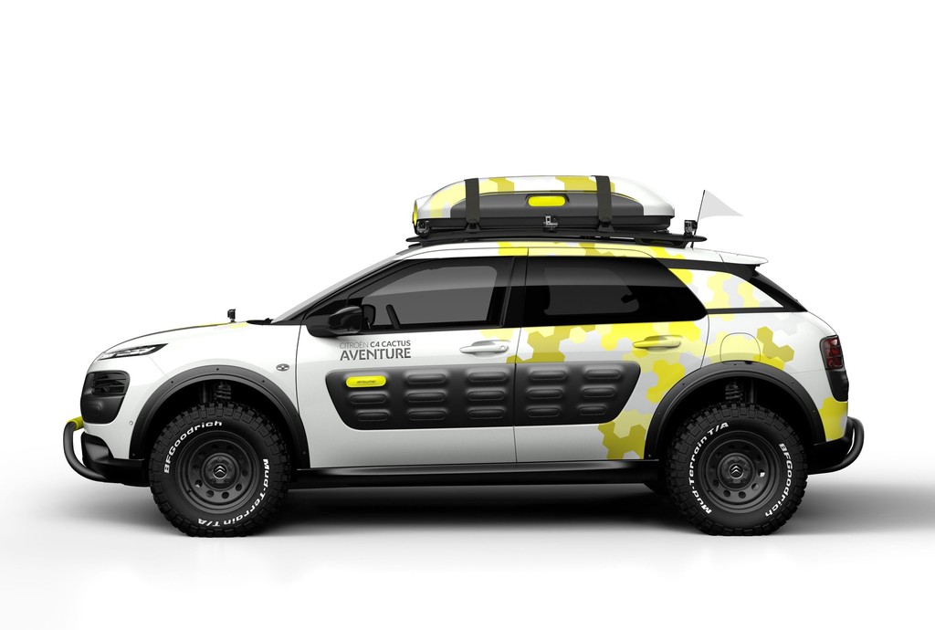 Den kompakten C4 Catus mit seinen Schutzelementen aus Luftkapseln wird in Genf auch gleich das Konzeptfahrzeug C4 Cactus „Aventure“ zur Seite gestellt, die dem neuen Crossovern noch mehr Abenteuercharakter verleiht. Foto: Auto-Medienportal.Net/Citroen