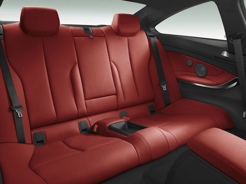 BMW 4er Coupé – Im Fondbereich unterstreichen konturierte Sitze die sportliche Ausrichtung des BMW 4er Coupé. Einmodellierte Kopfstützen und breite, angeformte Sitzwangen lassen die Rücksitze dabei wie zwei Einzelsitze erscheinen. Foto: Auto-Medienportal.Net/BMW