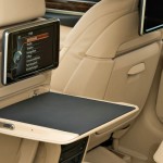 Feine Materialien, handwerkliche Verarbeitung und höchste Funktionalität prägen den Innenraum der BMW 7er Limousine. Fahrer und Beifahrer nehmen auf neu gestalteten Ledersitzen Platz, die optimalen Seitenhalt und Langstreckenkomfort bieten. Auch im Fond reisen die Passagiere komfortabel und von Geräuschen weitestgehend abgeschirmt. Auf Wunsch stehen hinten ebenfalls Einzelsitze zur Verfügung. Dabei sorgt das optionale Rear Seat-Entertainment mit neuem Flatscreen-Monitor im 9,2-Zoll-Format auch auf langen Strecken für Unterhaltung. Ein perfektes Klangerlebnis verspricht zudem das neue Bang & Olufsen High End Surround Sound System mit 1200 Watt und 16 Lautsprechern, darunter ein illuminierter Center-Lautsprecher, der sich nahezu vollständig im Instrumententräger versenken lässt.