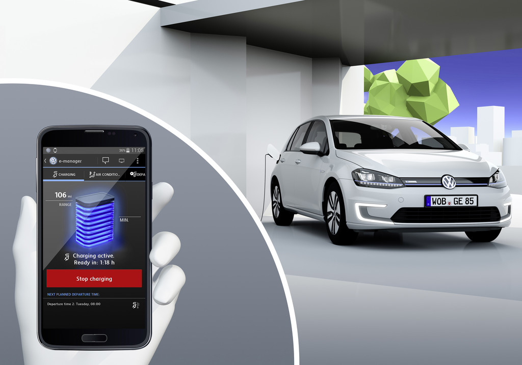 Weniger Zukunfts- als Gegenwartsmusik stellt der ebenfalls in Las Vegas zu sehende Connected Golf dar. Die digitale Ausstattung des E-Golf demonstriert den aktuellen Stand der Vernetzungsmöglichkeiten, wie sie für die verschiedenen Fahrzeugreihen von Volkswagen zur Verfügung stehen oder künftig angeboten werden. Die onlinebasierten Funktionalitäten werden dabei unter dem Namen Car-net zusammengefasst. Als einer nach den Worten von Dr. Volkmar Tanneberger, Leiter der Elektrik- und Elektronikentwicklung bei Volkswagen, wenigen Autoherstellern ermöglicht es VW dabei, bei der Smartphone-Anbindung via App-Connect auf gleich drei Systeme zurückzugreifen: Mirror Link, Android Auto für Android-basierte Geräte oder Car-Play für Apple-Produkte.