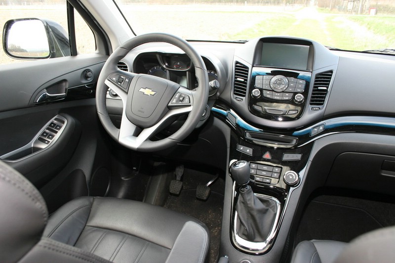 Chevrolet Orlando – Die optische Anmut des Hartplastiks im Interieur täuscht weichen Kunststoff vor und gehört zu den besten ihrer Art. Das flach nach vorn ansteigende Cockpit sorgt auf den vorderen Plätzen für ein großzügiges Raumgefühl. Foto: Auto-Medienportal.Net