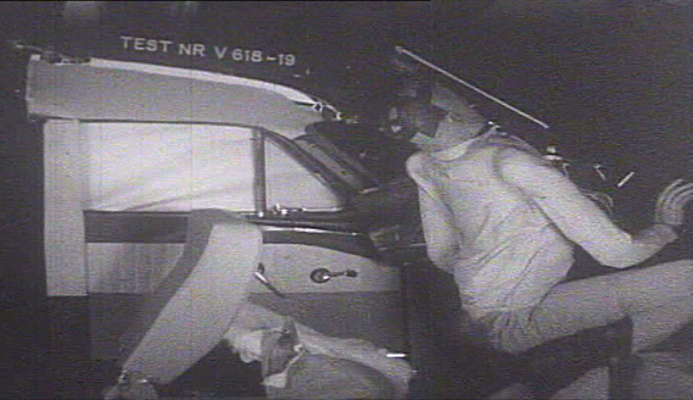 Fahrzeug-Crashtest ohne Gurt in den 50er Jahren. Foto: Auto-Medienportal.Net/Volvo
