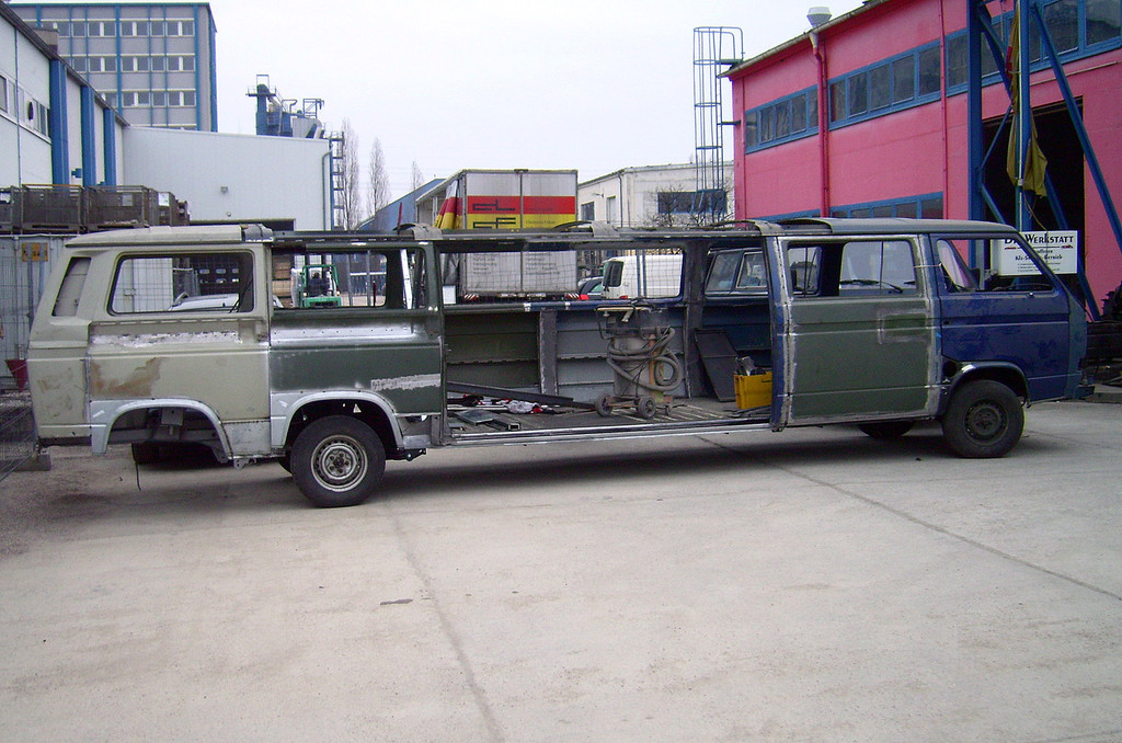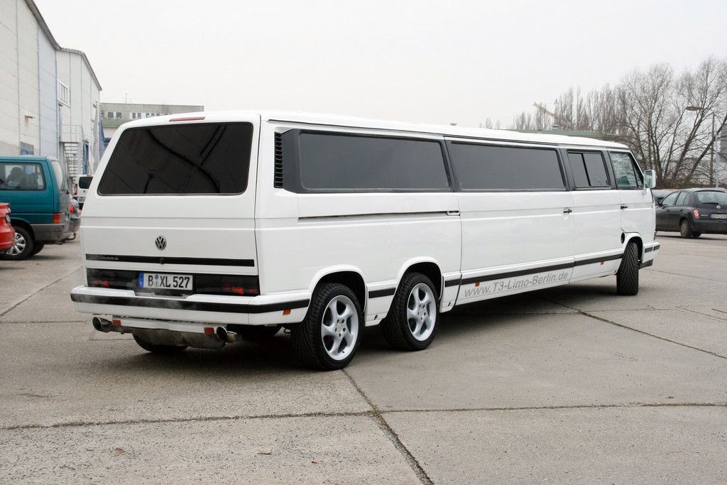 Den Gedanken, aus mehreren T3-Volkswagen eine Stretch-Limousine zu bauen, kann man wohl getrost als Schnaps-Idee bezeichnen. Allerdings stand Bier im Vordergrund, als auf einer Grillparty mit Freunden der Vorsatz reifte. Christian Lemke beschäftigt sich seit Jahren mit VW-Bussen, hat sie in seiner Werkstatt in Berlin-Hohenschönhausen repariert, restauriert, ge- und verkauft, sogar einmal eine Version mit stark verkürztem Radstand zusammen geschweißt. Derzeit sind in zwei Hallen rund 80 Exemplare untergebracht, darunter auch Autos von Kunden, die ihre Lieblinge dort warten und pflegen lassen.