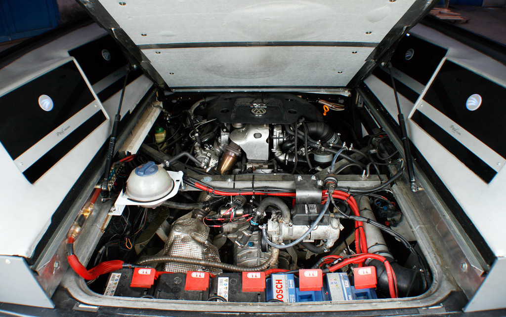 Um den immensen Strombedarf zu decken, reichte einfache Passat-Elektrik nicht mehr aus. Eine Batterie ist allein für das Starten des Motors zuständig, vier weitere versorgen die diversen Verbraucher. Die Lichtmaschine wurde vorsichtshalber aus einem VW Touareg entnommen.