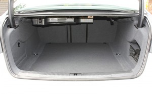 Ein handbreite Ladekante muss überwunden werden, aber sonst ist an alles gedacht: Ösen zum Verzurren von Gepäckstücken, Durchlademöglichkeit (abschließbar) bei komplett ausgeklapptem Mittelteil der Fondsitzlehne. Die Heckklappe öffnet sich auch per Fernbedienung. Oben zu sehen: eine Lautsprechereinheit à la Bang & Olufsen. Foto: S. Riedel/Auto-Reporter.NET