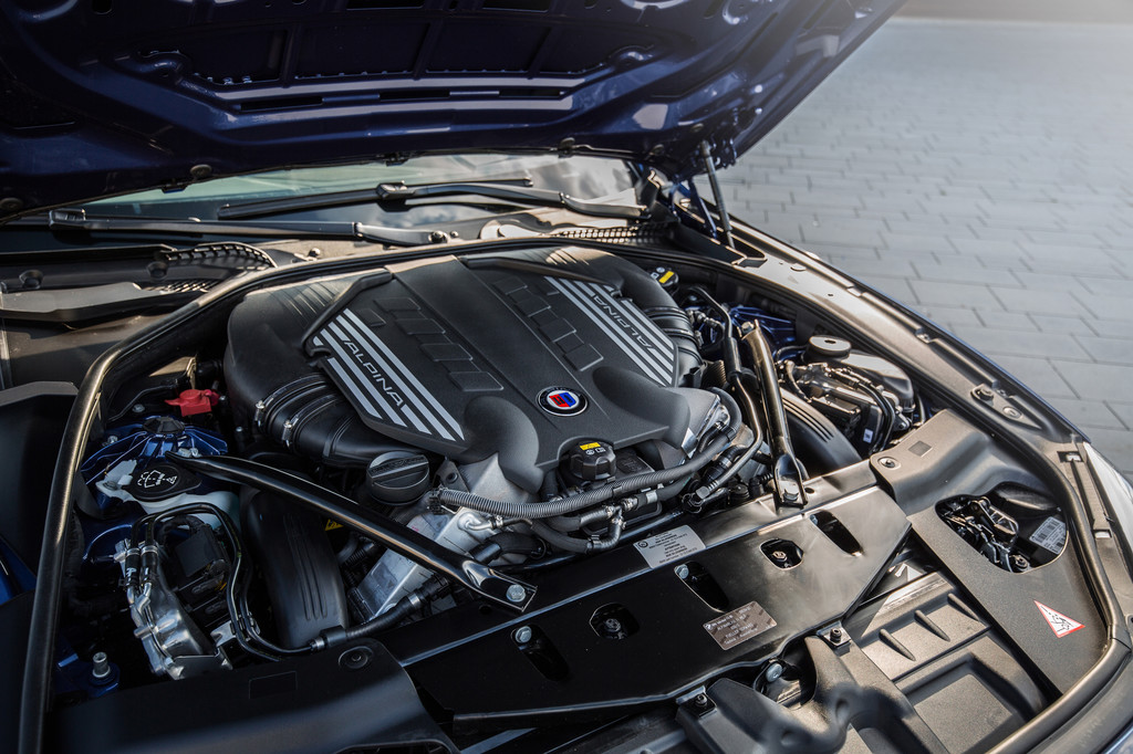 Der Motor des BMW Alpina B6 Biturbo Edition 50 Cabriolet leistet 441 KW / 600 PS und beschleunigt das Cabrio in 4,2 Sekunden auf Tempo 100. Die Höchstgeschwindigkeit beträgt 327 km/h. Foto: Auto-Medienportal.Net/Alpina, Gudrun Muschalla