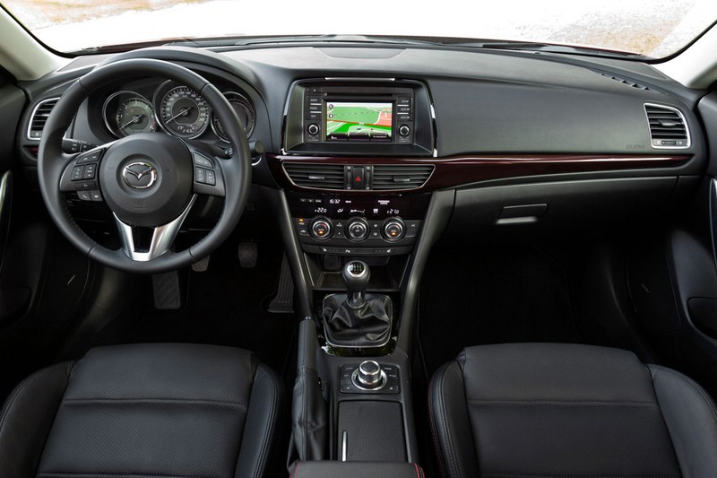 Regelanlage, ein Pre-Crash-Safety-System mit aktivem Bremseingriff, City-Notbremsfunktion, Tagfahrlicht, Klimaautomatik, 5,8-Zoll-Touchscreen, Freisprecheinrichtung, Licht- und Regensensor und Geschwindigkeits-Regelanlage. Foto: Auto-Medienportal.Net/Mazda