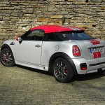 Bescheidenheit ist seine Sache nicht. Er kracht mit Form und wilder Straßenmode in jedes Auge. Jeder Quadratzentimeter Provokation, von den riesig wirkenden 17-Zöllern bis zu den beiden Streifen, die sich rot auf weißen Bug und Heck und weiß auf dem roten Dach breitmachen. Das Dach selbst erinnert mit seinem weit über das Heckfenster reichenden Spoiler an das Basecap auf dem Kopf eines Skateboarders – mit dem Schirm nach hinten. Das Mini John Cooper Works Coupé reizt seinen Fahrer und alle anderen aber nicht nur im Stand.