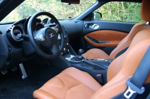 Nissan 370 Z – Der Innenraum – Nicht unnötig spartanisch, sondern fast schon luxuriös gibt sich der mit dem 600 Euro teuren Persimmon-Orange-Lederpaket, das auch Türinnenverkleidungen aus orangefarbenem Stoff beinhaltet und für Wohlfühlatmosphäre sorgt. Foto: Auto-Medienportal.Net/Nissan