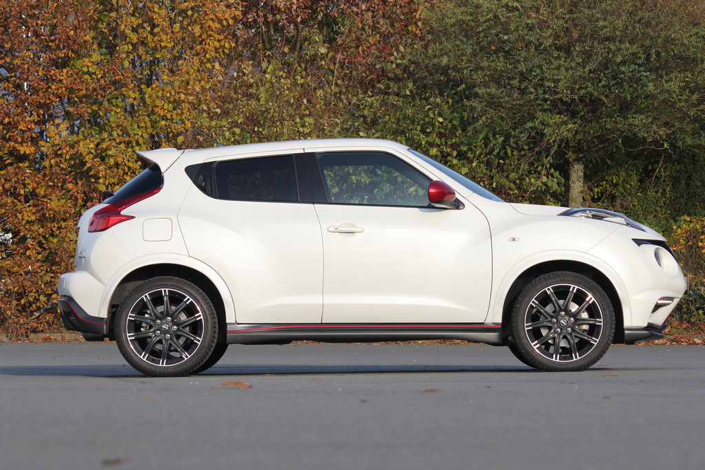 Nissan Juke Nismo – Mit muskulöserer Aerodynamik, einem strafferen Fahrwerks-Setup und 7 kW / 10 PS mehr als die bisherige Topversion 1.6 DIG-T kommt der Juke zwar gut um die Kurve, aber stellt keinen GTI in den Schatten. Foto: Auto-Medienportal.Net