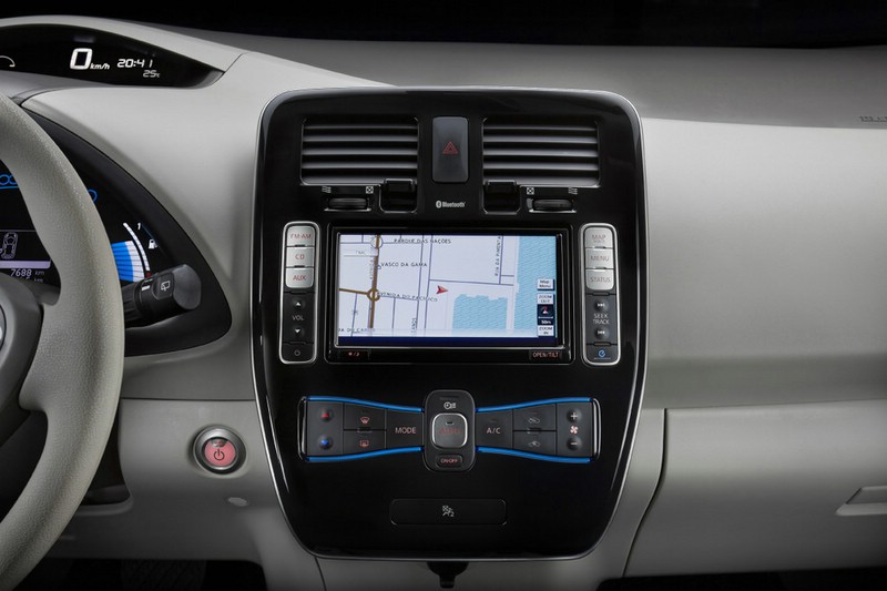 Der Nissan Leaf spart auch nicht bei den Komfort- und Sicherheitssystemen. Sechs Airbags, ein Navigationssystem, Rückfahrkamera, ESP, LED-Hauptscheinwerfer, LED-Rückleuchten, Klimaautomatik mit Zeitsteuerung, Zentralverriegelung, Intelligent Key, elektrisch anklappende, beheizbare Außenspiegel und elektrische Fensterheber vorn und hinten sind ebenso an Bord wie IT- und Telematiksysteme. Foto: Auto-Medienportal.Net/Nissan