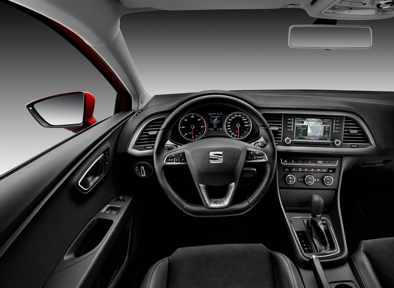 Seat Leon – Das dicke Lenkrad, die breite, auf den Fahrer ausgerichtete Mittelkonsole und die gut ausgeformten Sitze lassen den Eindruck von Sportlichkeit entstehen. Foto: Auto-Medienportal.Net/Seat