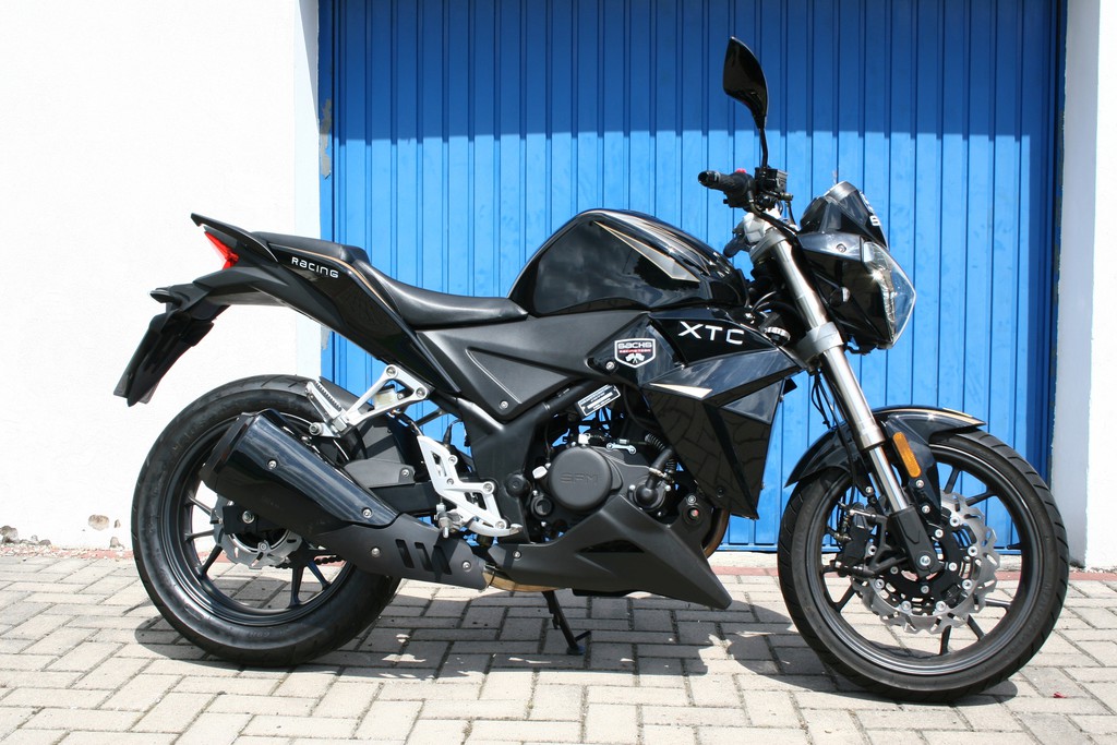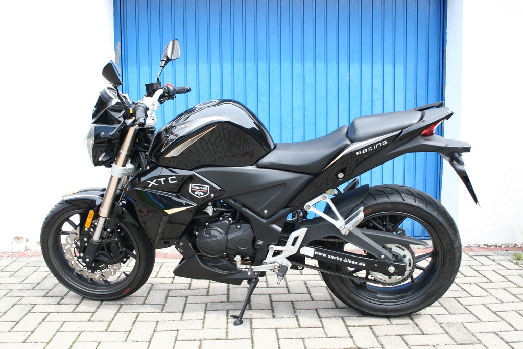 Wie gesagt, äußerlich kann diese 125er auf Anhieb gefallen. Als Zugeständnis an die junge Käuferschicht dürfen die Aufkleber „Sachs Racing Team“ vorne und „Racing“ hinten gewertet werden. Im Fahralltag ist die XTC allerdings nicht ganz so sportlich unterwegs. Verantwortlich dafür ist vor allem das recht hohe Gewicht von 150 Kilogramm bei einer Spitzenleistung von 9 kW / 12 PS.