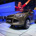 Die 2. Generation des Ford Kuga auf dem Genfer Autosalon 2012. Lackfarbe: Micastone-Silber Metallic und Brisbane-Braun Metallic.
