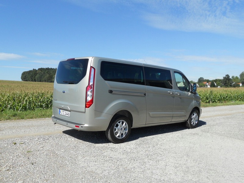 Der Ford Tourneo Custom steht als geräumiger Acht- und Neunsitzer mit zwei verschiedenen Radständen (2933 und 3300 Millimeter) zur Wahl, die Außenlängen variieren entsprechend zwischen 4,97 und 5,34 Meter. Foto: Auto-Medienportal.Net