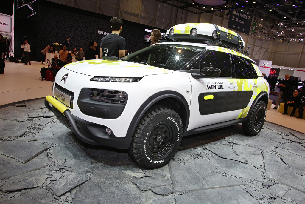 Citroen C4 Cactus: Welches optische Potenzial der neue Wagen bietet, zeigt Citroen auf dem Genfer Autosalon mit der auf Abenteuer getrimmten und seriennahen Konzeptauto Cactus Aventure. Foto: Auto-Medienportal.Net/Manfred Zimmermann