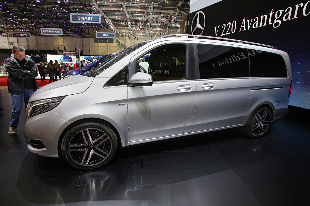 „Der Mercedes unter den Großraumlimousinen“ – unter diesem Motto präsentiert Mercedes-Benz den Nachfolger des Viano. Zu A-, B-, C-, G,- M- und S-Klasse gesellt sich nun die V-Klasse. Getreu der Firmenphilosophie bietet auch der neue Van eine Vielzahl von Assistenzsystemen. Dazu gehören unter anderem der serienmäßige Seitenwind-Assistent und der optionale Aktive Park-Assistent, mit dem das Einparken der Großraumlimousine so einfach ist wie mit einem Kompaktwagen sein soll.