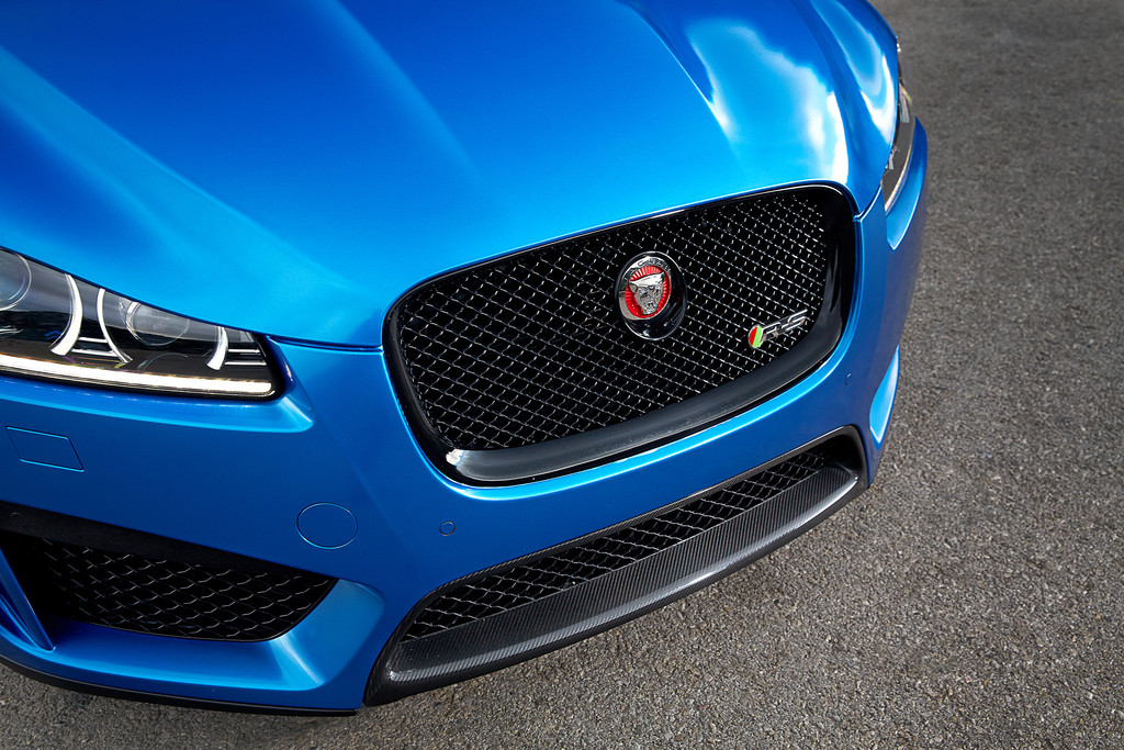 Jaguar XFR-S Sportbrake – Für optimierte Atemwege des V8 sorgt ein tiefer gezogener Stoßfänger mit vergrößertem zentralen Lufteinlass und großflächigen seitlichen Einlassschächten. Foto: Auto-Medienportal.Net/Jaguar