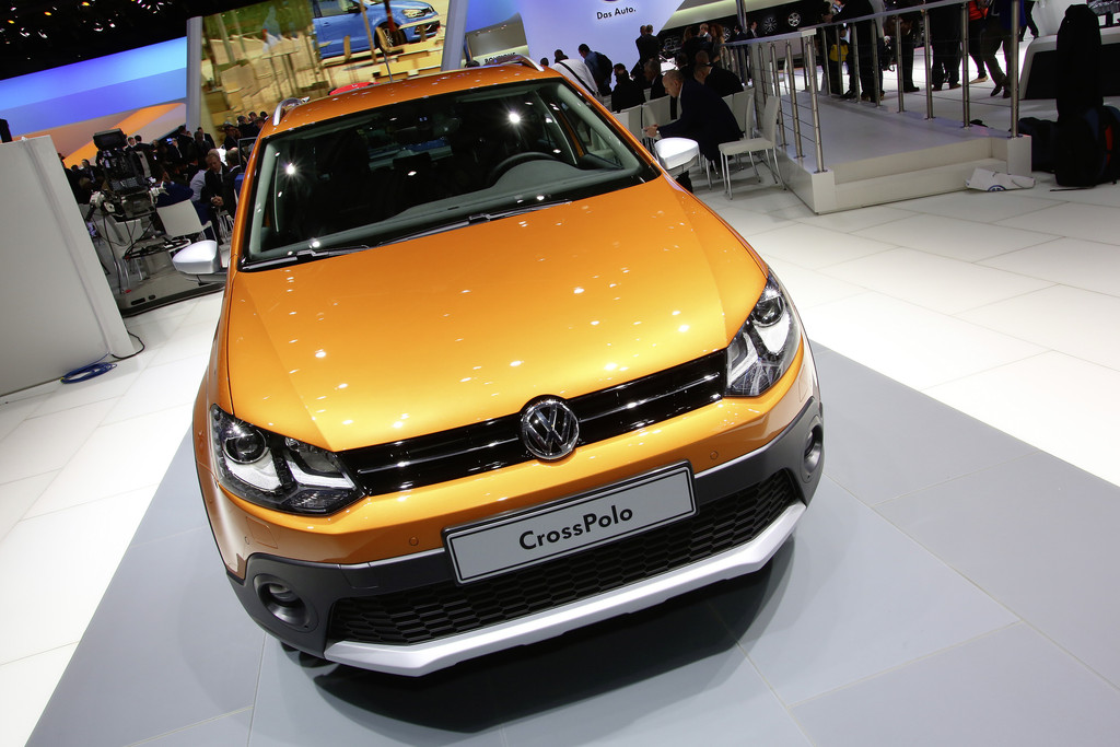 VW zeigt seine neuen Modelle (hier der CrossPolo) auf dem Genfer Autosalon 2014. Foto: Auto-Medienportal.Net/Manfred Zimmermann