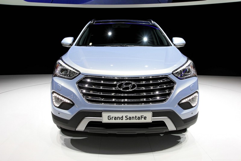 Grand Santa Fe in Genf – An der Front kennzeichnen die zweite Santa Fe-Variante zudem ein modifizierter Kühlergrill, vergrößerte Nebelscheinwerfer und ein neu gestalteter Frontstoßfänger. Foto: Auto-Medienportal.Net/Manfred Zimmermann