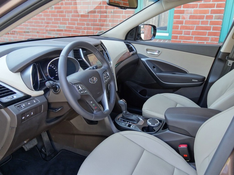 Gute Materialien, gute Verarbeitung, eine gelungene Gestaltung der Instrumente, die Ledersitze – alles das spricht davon, dass die Top-Ausstattungslinie des „ix45“ nicht nur umsonst „Premium“ heißt, sondern den Santa Fe in diese Richtung schieben will. Foto: Auto-Medienportal.Net