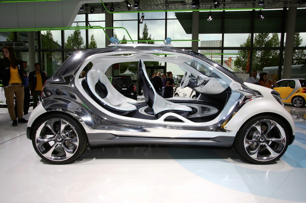 Einst hieß er Forfour, nun nennt er sich Fourjoy: Smart zeigt auf der Internationalen Automobil-Ausstellung in Frankfurt (10. – 22.9.2013) seine neue Version eines viertürigen Viersitzers. Die Studie ist 3,49 Meter lang, 1,98 Meter breit und 1,94 Meter hoch und verzichtet als Ausstellungsstück derzeit noch auf Türen, Scheiben und Dach.