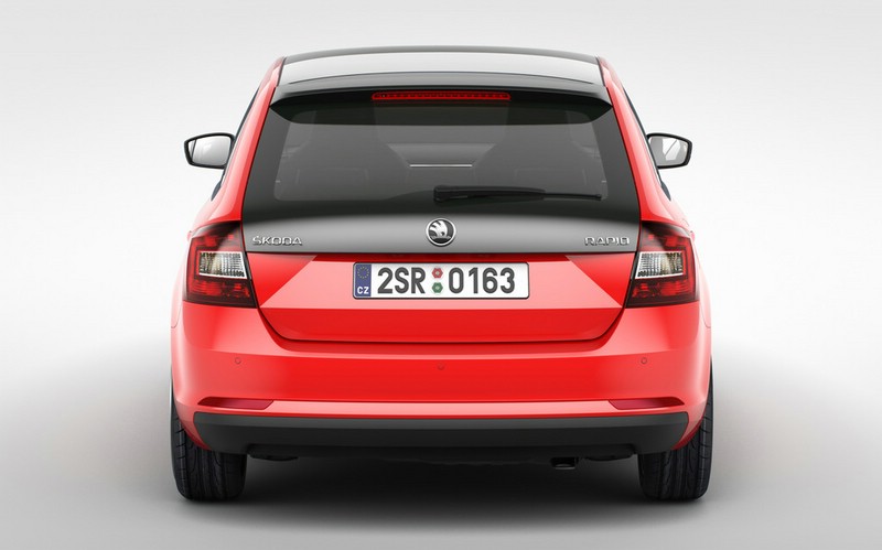 Skoda Rapid Spaceback – Das Heck ist klar gezeichnet und wirkt ausgewogen und aufgeräumt. Ein schwarzes Diffusor-Element betont die horizontale Ausrichtung ebenso wie die breiten Heckleuchten im Marken-typischen C-Design. Foto: Auto-Medienportal.Net/Skoda