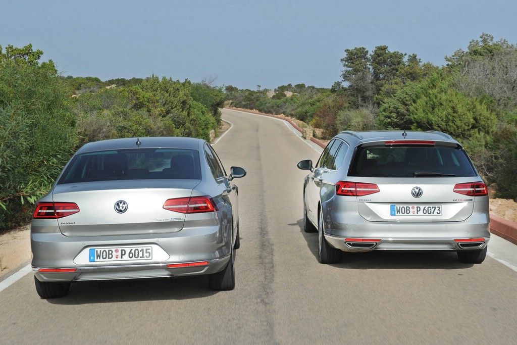 Die etwas leichtere Limousine liegt dagegen bei den Fahrleistungen um eine Nasenlänge in Front. Den Sprint von 0 auf 100 km/ entscheidet sie in 8,7 zu 8,9 Sekunden ebenso für sich wie die Höchstgeschwindigkeit von 220 zu 218 km/h. Den Normverbrauch gibt Volkswagen mit jeweils 4,1 Liter gleich an.