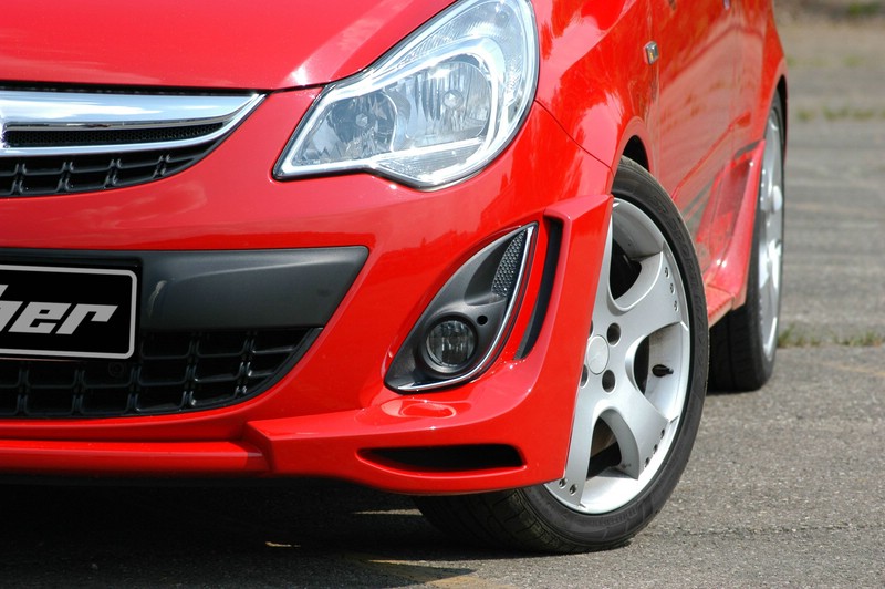 Irmscher-Tuning für den Opel Corsa D – Die Frontspoilerlippe nimmt die Linienführung des Frontstoßfängers übergangslos auf und soll nachhaltig die sportliche Ansicht der Front betonen. Foto: Irmscher/Auto-Reporter.NET