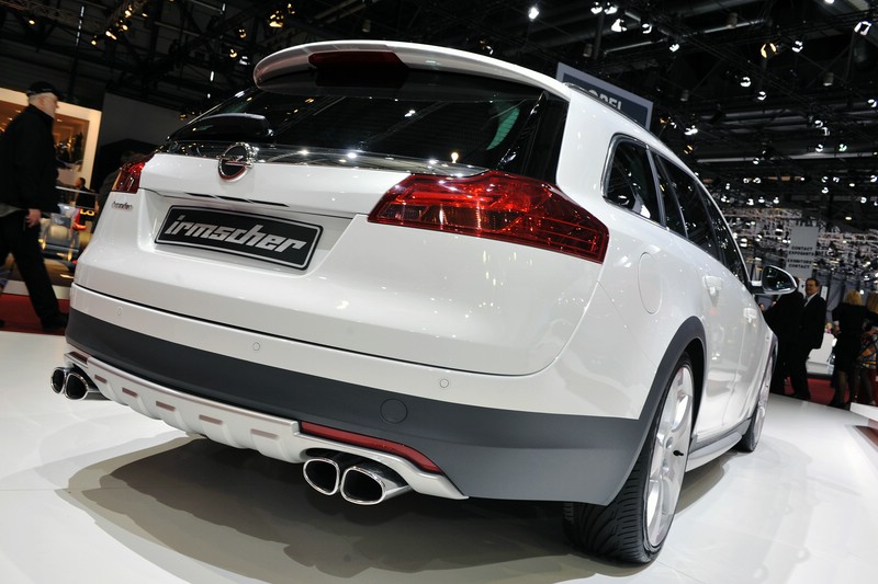 Opel Insignia ST von Irmscher auf dem Genfer Autosalon 2012 – Die neu entwickelten Leichtmetallräder Turbo Star exclusiv silber und Evo Star silber sorgen in der Dimension 8,5×20“ für einen starken Auftritt, das Fahrwerk des Insignia wurde optimiert. Für eine wirkungsvolle Verzögerung sorgt Irmschers neu entwickelte Sportbremsanlage. Foto: UnitedPictures/Auto-Reporter.NET