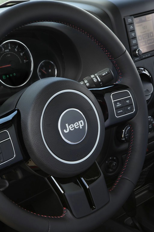 Zur Ausstattung von Jeep Wrangler und Jeep Wrangler Unlimited „Black Edition“ auf Basis Sahara zählen unter anderem ein Informationscenter (EVIC) mit Reiserechner, Kompass, Verbrauchs- und Temperaturanzeige, eine Geschwindigkeitsregelanlage, eine Klimaautomatik, geteilt umklappbare Rücksitzlehnen, ein MP3-fähiges Audiosystem mit CD-/DVD-Player, mehrstufige Frontairbags (Sitzbelegungserkennung auf der Beifahrerseite), ein elektronisches Stabilitätsprogramm „ESP“ mit Überrollschutzsystem, eine Antriebsschlupfregelung und Berganfahrassistent und ABS-Bremsen mit Bremsassistent sowie ein Reifenluftdruck-Kontrollsystem mit Warnleuchte. Foto: Auto-Medienportal.Net/Fiat