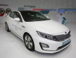 Das Facelift-Modell des Kia Optima in einer Hybrid-Version auf dem Genfer Auto-Salon 2014.