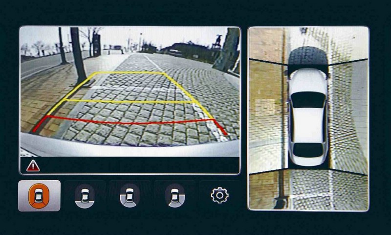Kia Quoris: Das Rundumsicht-Parksystem (Around View Monitor, AVM) arbeitet mit vier Kameras auf jeder Fahrzeugseite und sorgt für Komfort und Sicherheit beim Parken sowie beim Rangieren mit niedriger Geschwindigkeit. Foto: Auto-Medienportal.Net/Kia