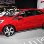 Exterieur Bilder vom Kia Rio (Signalrot Metallic) auf der IAA 2011.