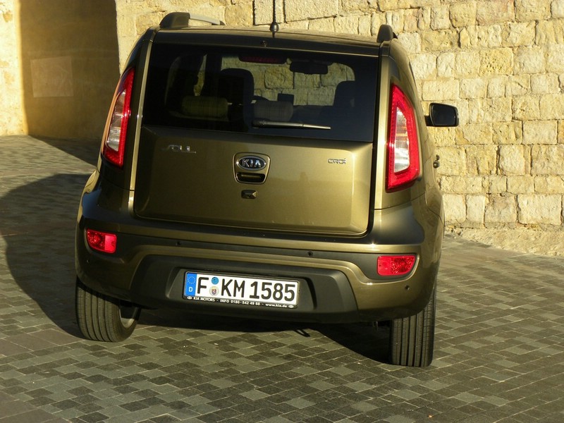 Kia Soul Facelift 2012 – Am Heck zieht sich der schwarze Einsatz im Stoßfänger jetzt über fast die gesamte Fahrzeugbreite. Foto: Auto-Medienportal.Net