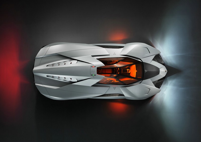 Lamborghini Egoista – Zwei weiße Lichter vorne und zwei rote hinten, ein roter Heckblinker im oberen Heckbereich, zwei orangefarbene Stieraugen als Side-Marker und zwei auf dem Dach, rot links und grün rechts, sorgen für eine einmalige Lichtgrafik. Foto: Auto-Medienportal.Net/Lamborghini