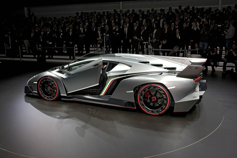 Der Lamborghini Veneno wird angetrieben durch ein Zwölfzylinder-Triebwerk mit 6,5 Liter Hubraum, er hat ein extrem schnell schaltende ISR-Getriebe mit fünf Fahrmodi, einen permanenten Allradantrieb und ein Rennsport-Fahrwerk mit Pushrod-Radaufhängungen und waagrechten Feder-/Dämpfer-Einheiten. Foto: Auto-Medienportal.Net/Manfred Zimmermann