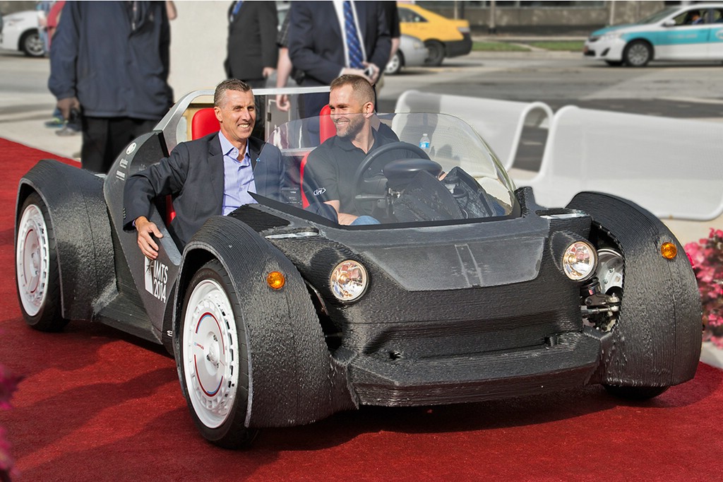 Die Einsatzmöglichkeiten dieser dreidimensionalen Drucktechnik sind nahezu unbegrenzt: So hat die medizinische Forschung bereits künstliche Körperteile reproduziert. In China druckte im April dieses Jahres ein gigantischer Drucker die Blöcke für zehn Häuser. Die Gebäude wurden innerhalb von zehn Tagen fertiggestellt – zum Preis von 4000 Euro pro Stück. (dpp-AutoReporter/wpr) Foto: Local Motors